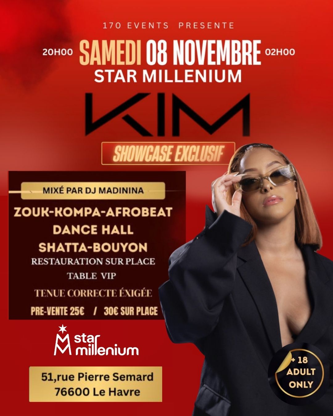 Rendez-vous samedi 08 novembre au Star Millenium pour une soirée exceptionnelle de 20h à 02h