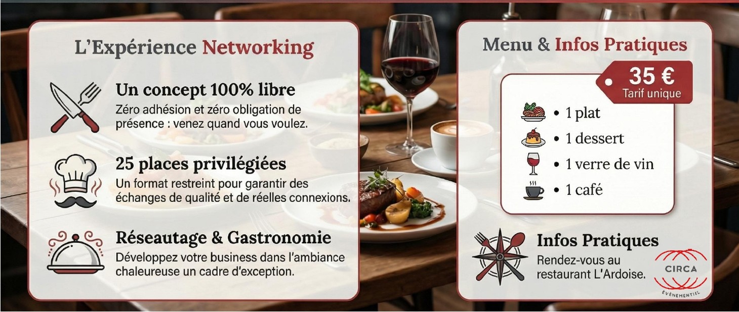 L'objectif ? Créer des synergies, partager nos actus et développer notre réseau local dans une ambiance "gastronomie et bienveillance".