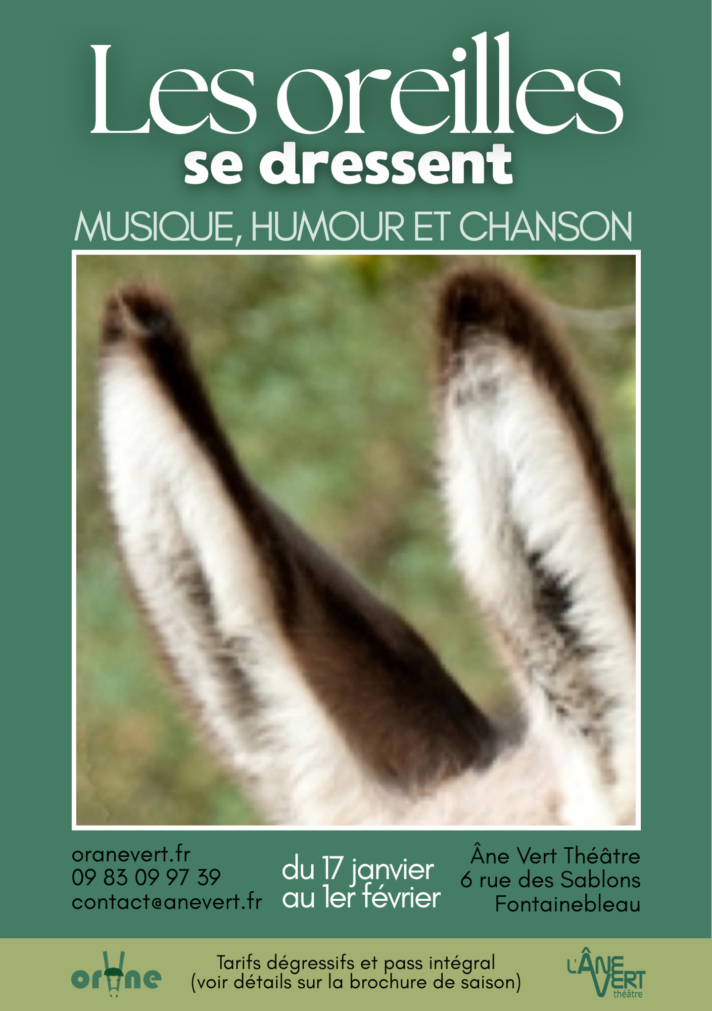 Intitulé « Les oreilles se dressent », notre événement réunira, du 17 janvier au 1er février 2026, 6 spectacles formant un mini-festival autour d’une thématique MUSIQUE, HUMOUR ET CHANSON.