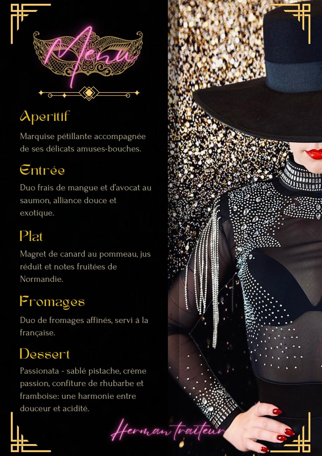 Au programme : un repas festif concocté par notre traiteur, suivi d’une revue cabaret d’1h15 mêlant chant, danse et transformisme, portée par une troupe d’artistes professionnels.