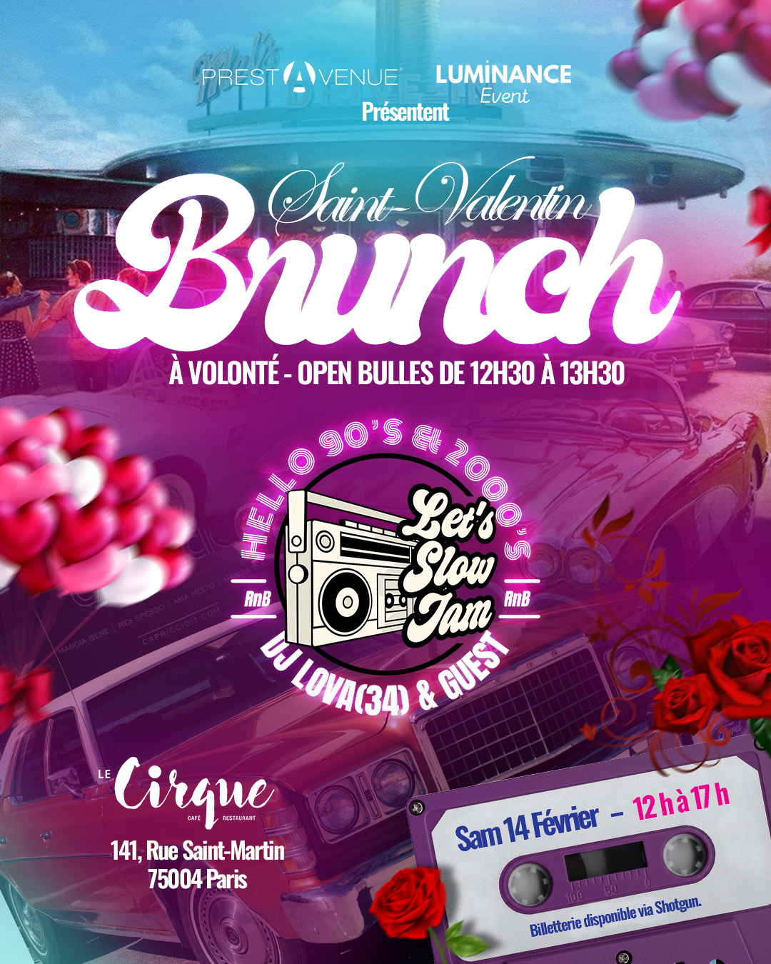 Brunch Saint-Valentin : Let's Slow Jam - Hello 90's & 2000's By Prestavenue & Luminance Event