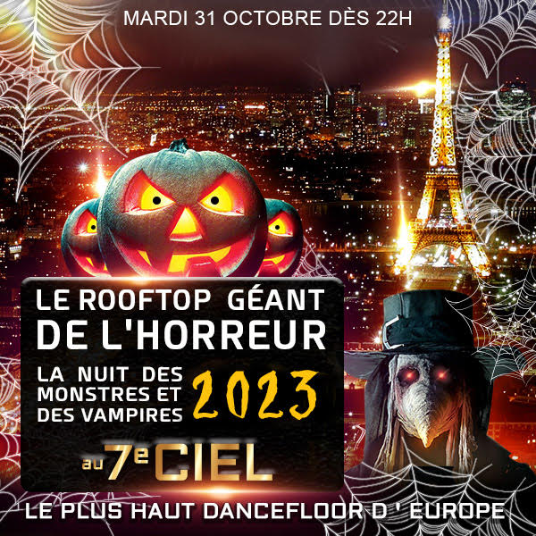 HALLOWEEN ROOFTOP PANORAMIQUE D'EXCEPTION AU 7ÈME CIEL (Le plus haut Dancefloor de Paris) sur le plus gros ROOFTOP Parisien (Vue Panoramique) à 10 minutes de la Tour Eiffel.
