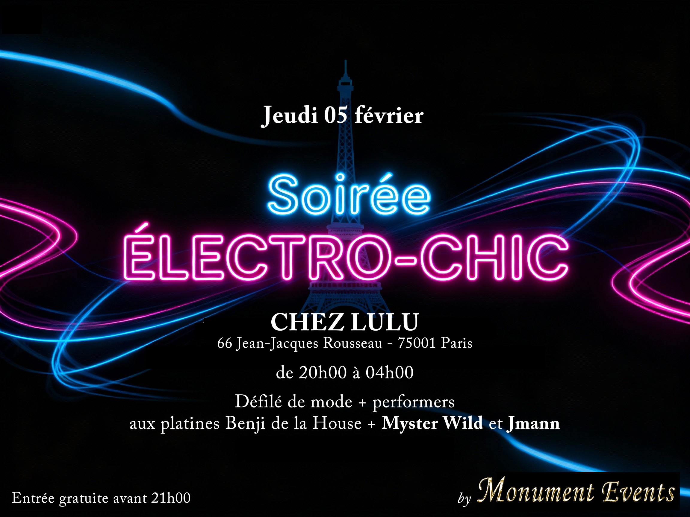 Soirée ELECTRO-CHIC le 05 février chez LULU (défilé de mode + performers + DJ)