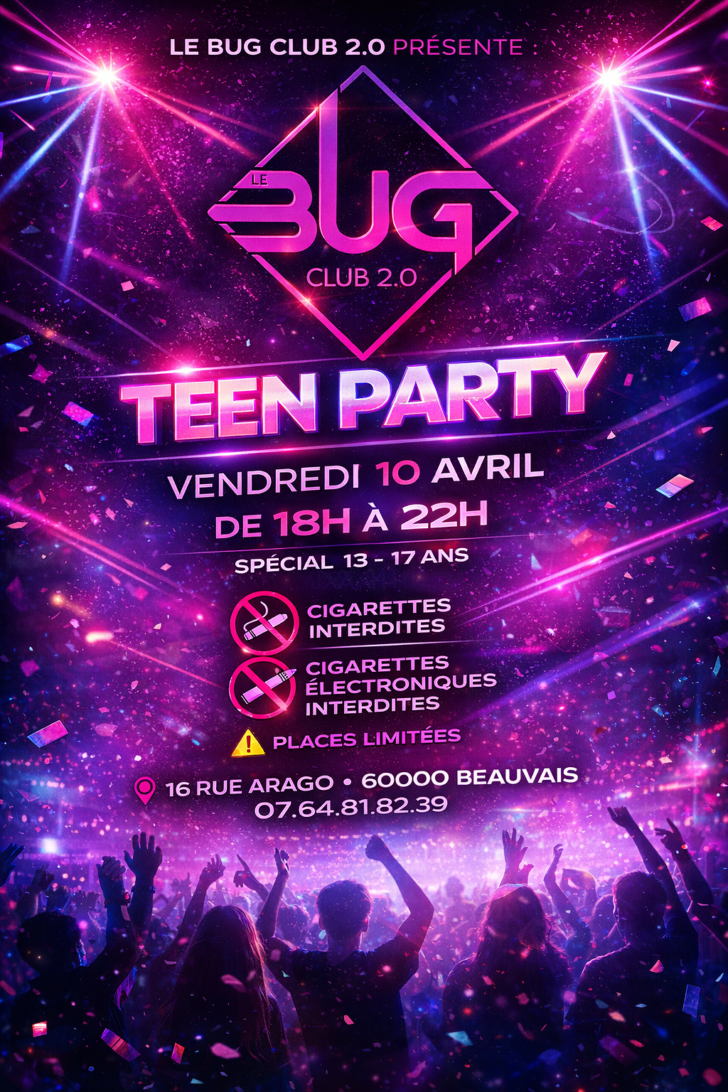 LA TEEN PARTY du mois d Avril au Bug Beauvais…