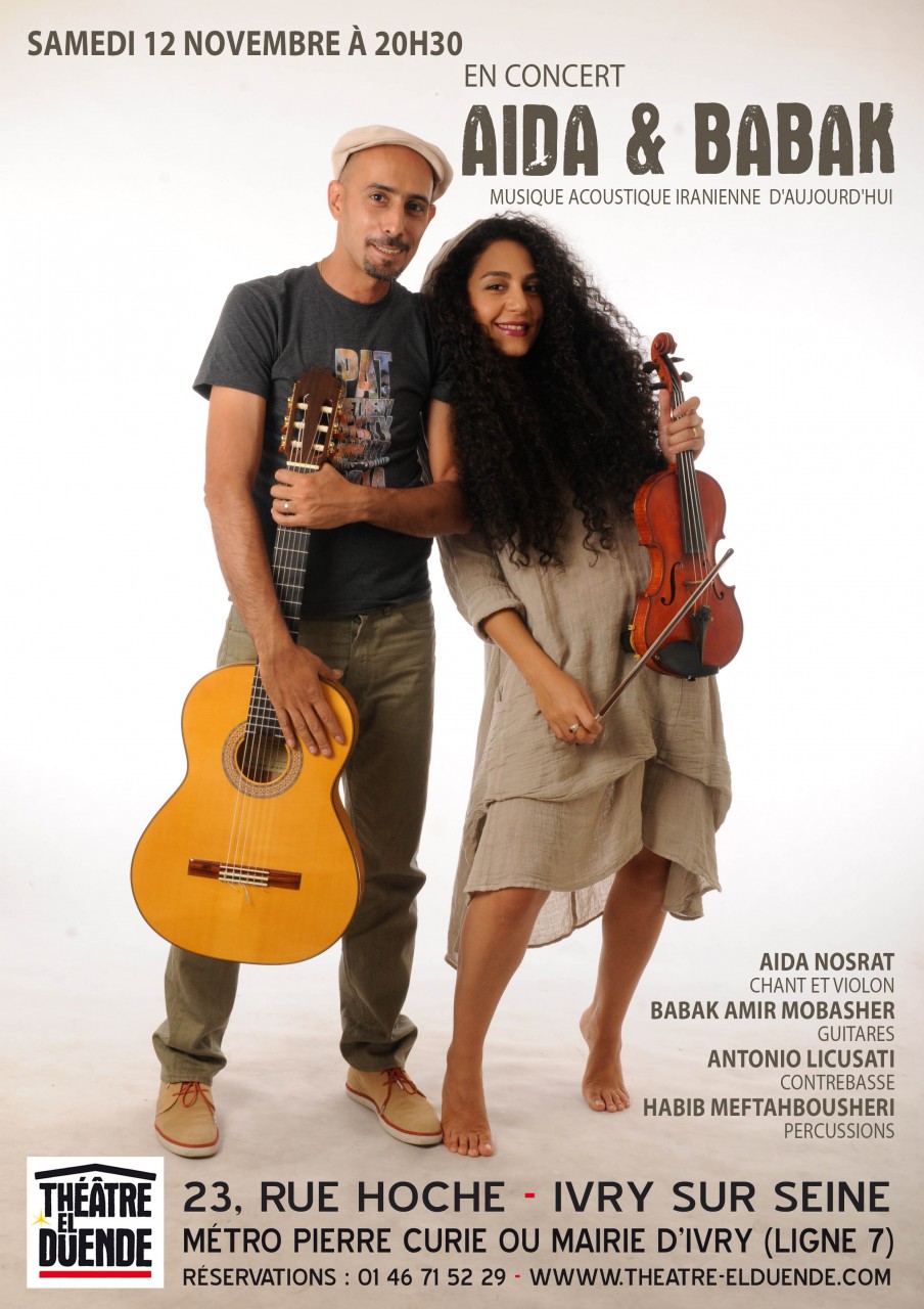 Aida Nosrat, chant et violon, Babak Amir Mobasher, guitare, tous deux compositeurs, forment le groupe Manushan en 2007. Leurs compositions évoluent entre musique traditionnelle iranienne, flamenco et jazz manouche.