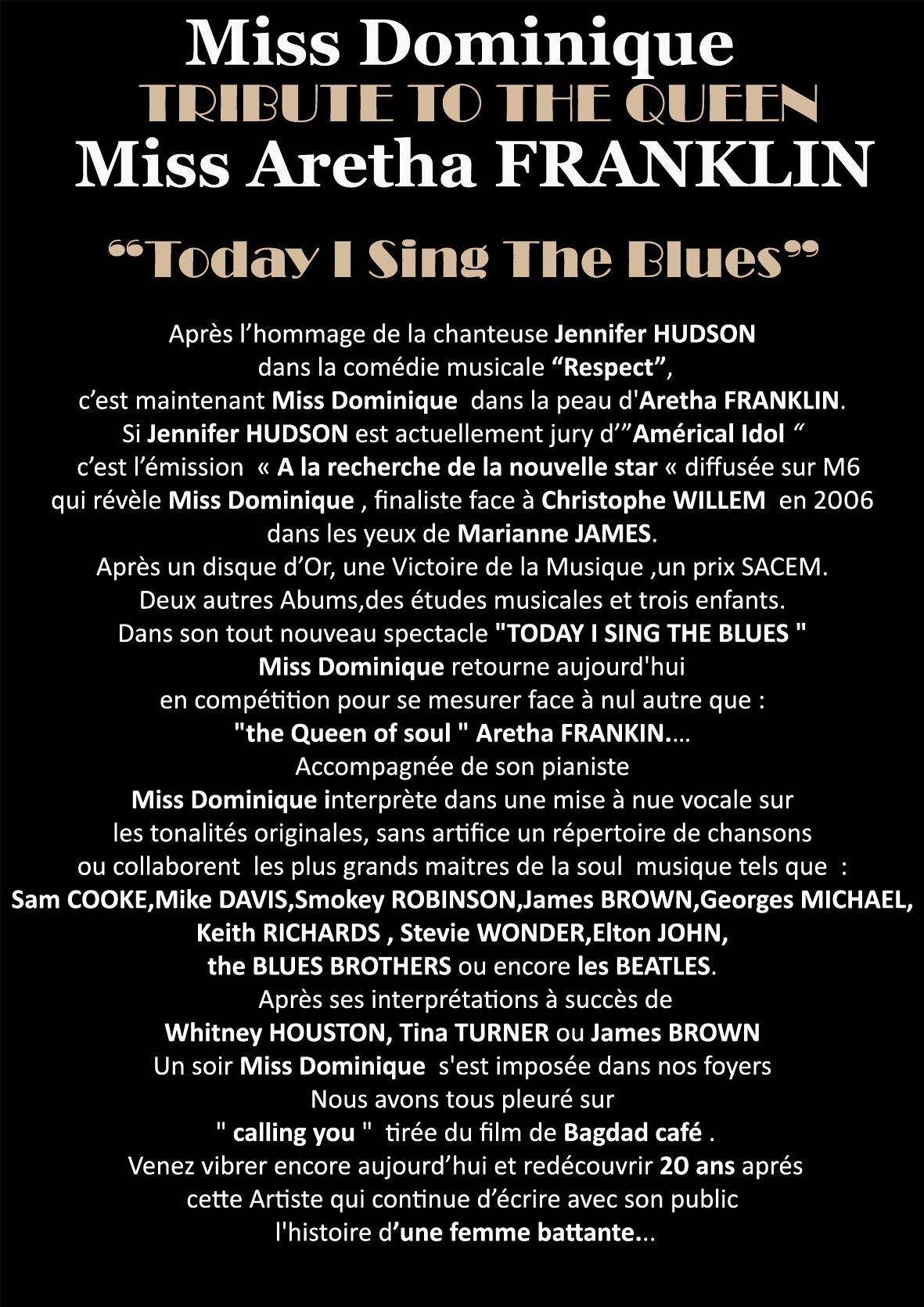 Miss Dominique TRIBUTE TO THE QUEEN Aretha FRANKLIN « Today I Sing The Blues »