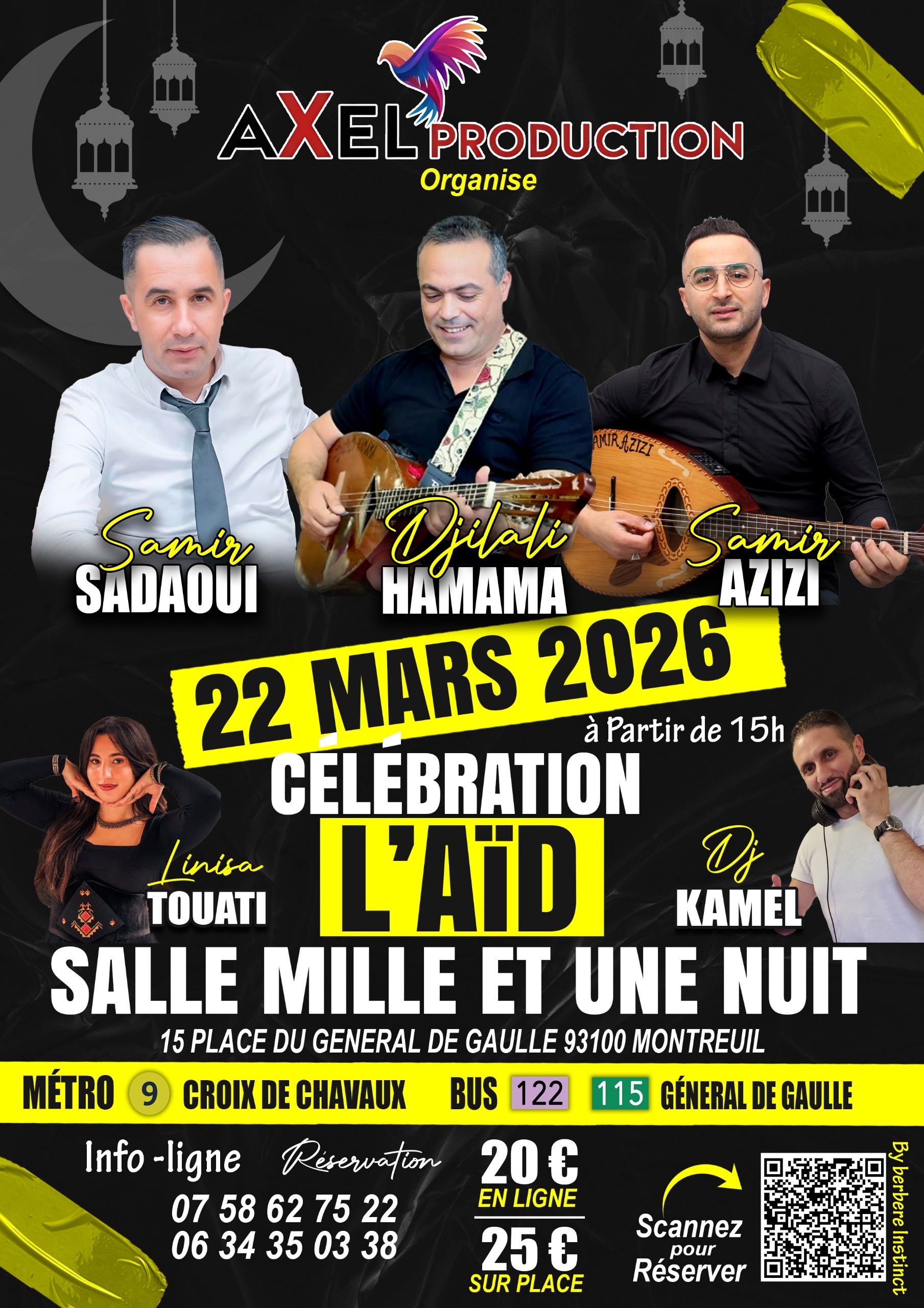Axel production à le plaisir de vous donnez rendezvous pour une soirée exceptionnelle afin de célébrer la fête de l'aïd.