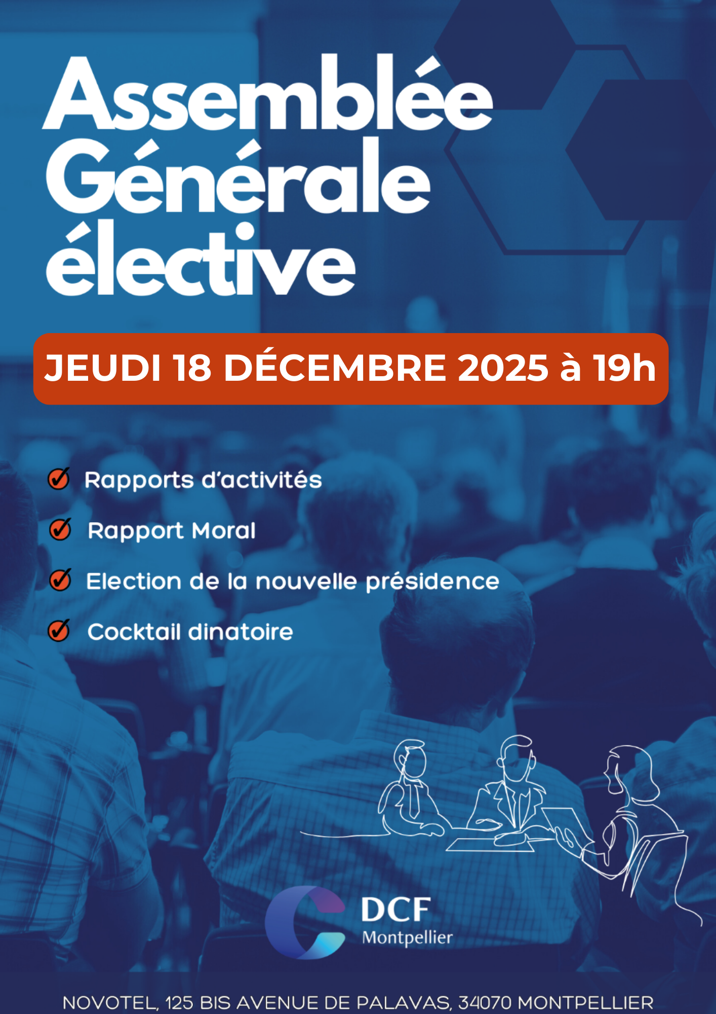 L'année 2025 touche à sa fin, marquant également un moment clé dans la vie de notre organisation : l'Assemblée Générale Élective 2025, qui se tiendra au Novotel Montpellier dans une ambiance à la fois solennelle et conviviale.
