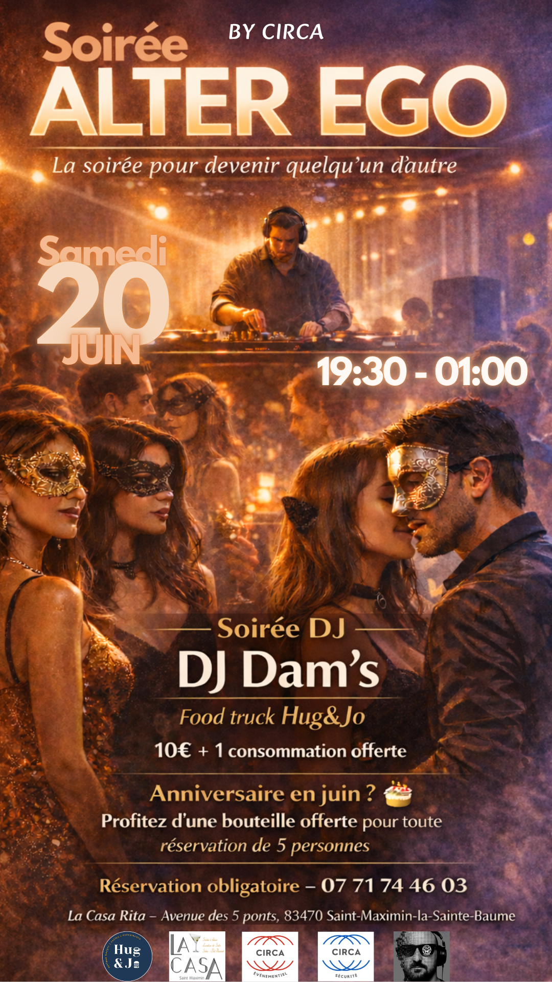#CircaEvent #AlterEgo #SoireeDeguisee #SaintMaximin #SortirEnProvence #AnniversaireJuin #BouteilleOfferte #DJDams #HugAndJo #LaCasaRita