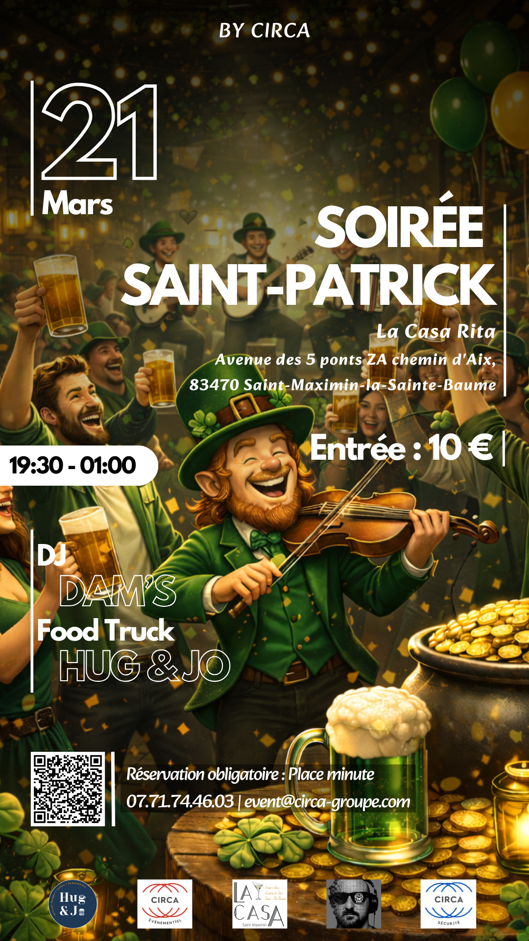 Rejoignez-nous pour célébrer la Saint-Patrick lors d'une soirée exceptionnelle organisée par Circa. Ambiance festive et conviviale garantie pour marquer cet événement incontournable.