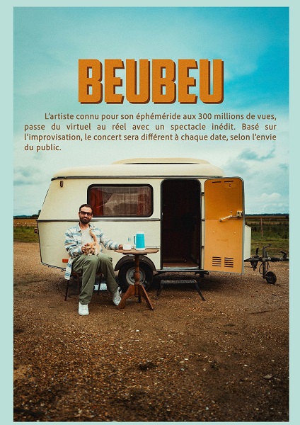 Alors aujourd'hui, Beubeu exporte le concept sur scène avec un défi encore plus grand et fou: Créez le spectacle en temps réel suivant vos envies et vos consignes! En clair, vous êtes les maîtres du jeu. Vous choisissez le thème des paroles, le style musical, l'intensité et même les instruments joués... Et en quelques instants une chanson née devant vous!