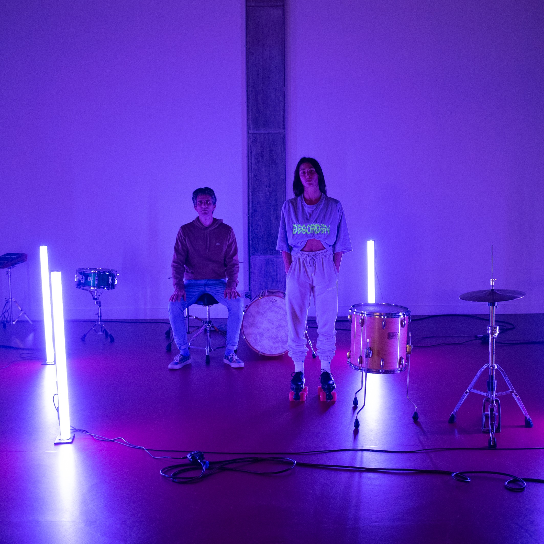 Performance pour rollers et batterie, DESORDEN nous entraine dans un rite hypnotique traversé par un désordre libérateur. Justine Berthillot roule, chute, défie l'équilibre comme une marionnette en transe guidée par le son. Avec elle, Xavier Roumagnac impulse une musique électro et percussive, portée par une batterie vibrante et une énergie brute.
