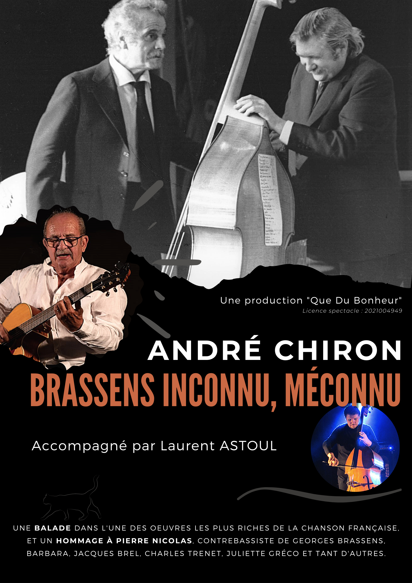 Pour cette première, nous rendrons hommage à Georges Brassens grâce à l’interprète Alain Chiron accompagné de Laurent Astoul à la contrebasse. Le duo vous fera découvrir les trésors cachés de l’œuvre du poète et ses plus grands succès !